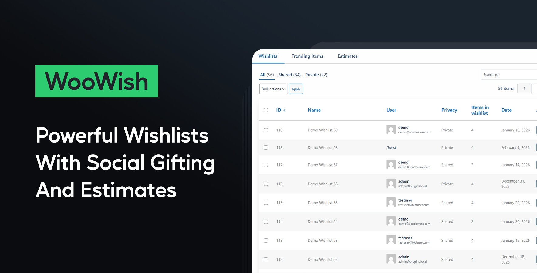 WooWish elevates this concept by combining wishlists, gifting, collaboration, estimates, notifications, and analytics into a unified system. Instead of simply letting customers save products, it turns wishlists into a social commerce engine that drives repeat visits, new customers, and real sales.